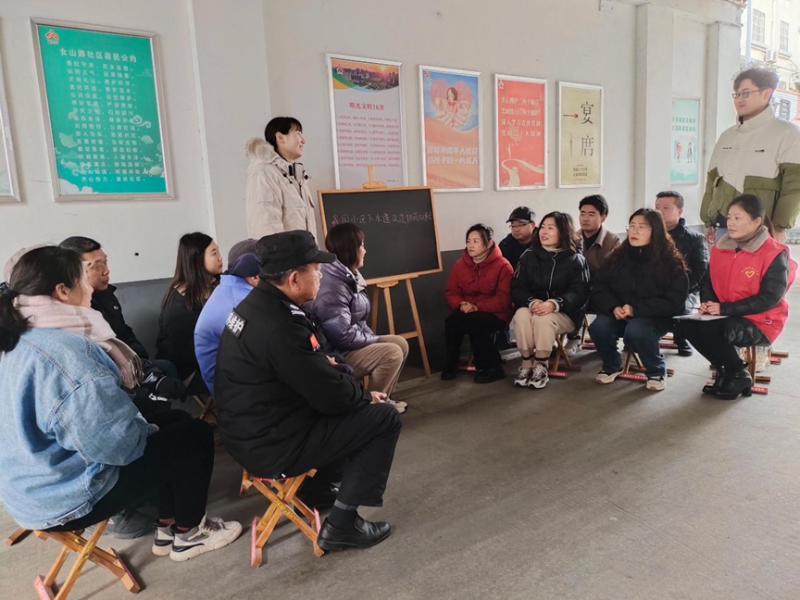 “小马扎”传声,政策宣讲有温度。针对辖区老年居民多、政策理解难的特点,社区组建由“双报到”党员、志愿者组成的30人服务队,摒弃固定讲台,把“微课堂”搬到院落凉亭。“双报到”党员发挥专业优势,用家常话解读医保新政、养老服务等内容,将“大政策”转化为“身边事”,累计开展宣讲32场,覆盖居民2000余人次,打通政策落地“最后一公里”。