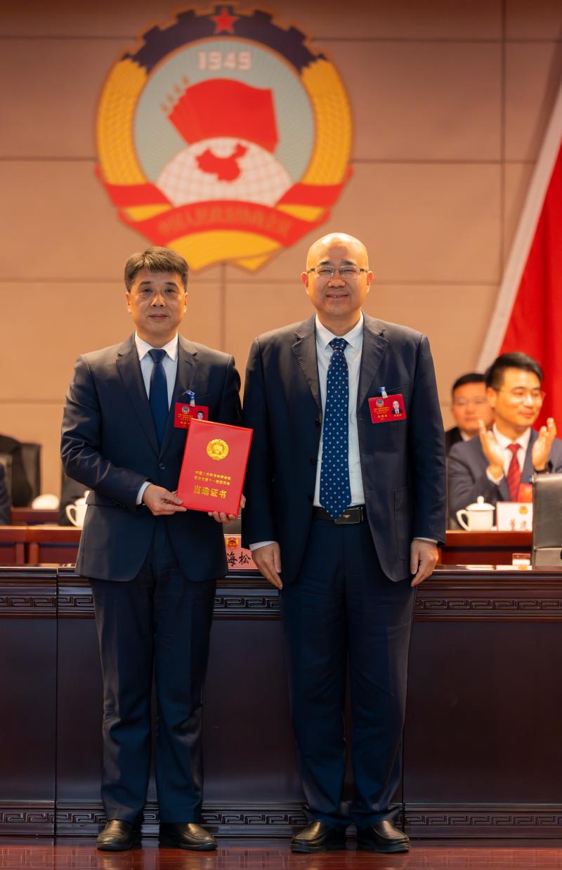 市委副书记、市长田海松为新当选的市政协主席颁发了当选证书。